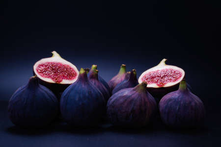 Macro close-up of figs on the dark background