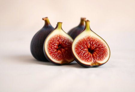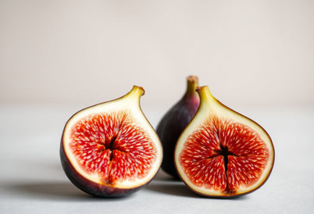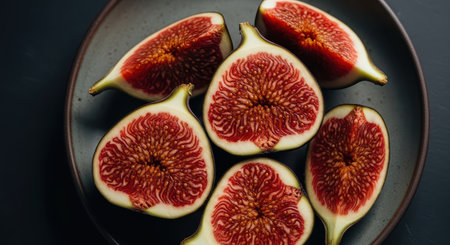 Fresh halved figs on ceramic plate – vibrant and juicy fruit display
