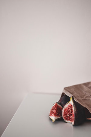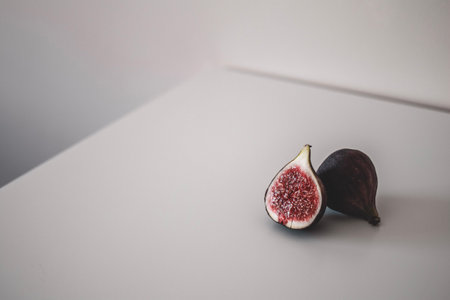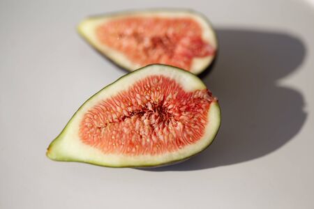 Two figs minimalism closeup. One fig in a cut on corner parts.