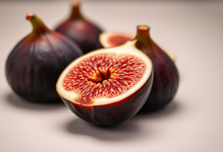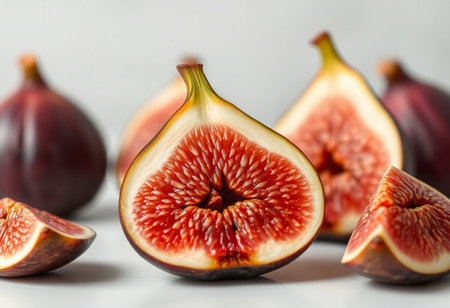 Fresh Figs CloseUp of Sliced and Whole Fig Fruits Showcasing Juicy Flesh and Seeds.