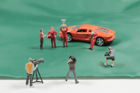 A closeup shot of a toy male figure and a car on the background - perfect for background