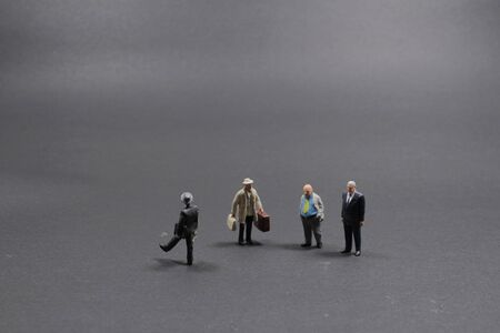 Miniature travellers at a train station. Concept of people keep distance in public to protect COVID-19 coronavirus spreading concept