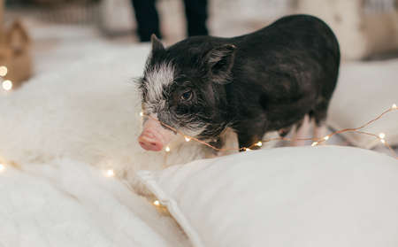 Black vietnamese piglet. Concept of the Chinese New Year 2019 of the Pig