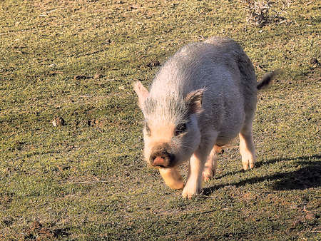 young piglet sniffing the ground