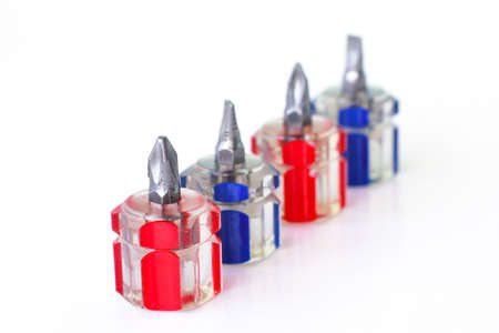 Transparent plastic phillip mini-screwdriver. Isolated on white background