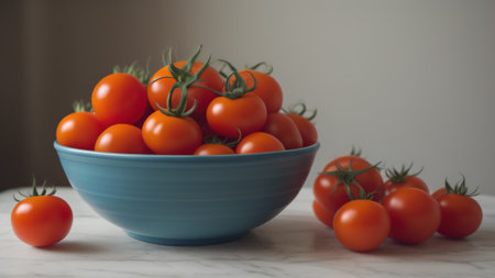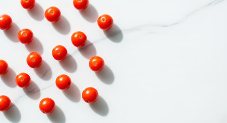 Fresh cherry tomatoes on marble surface with natural lighting