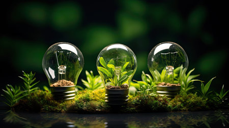 This captivating image features a light bulb containing a tiny tree and moss, capturing the essence of nature and sustainability in modern design.
