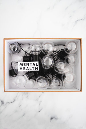 Problem Solving Idea - One illuminated bulb standing out among dead ones, cinematic lighting with empty space for messaging