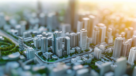 Modern contemporary style model buildings with the tilt shift effect, created with generative AI