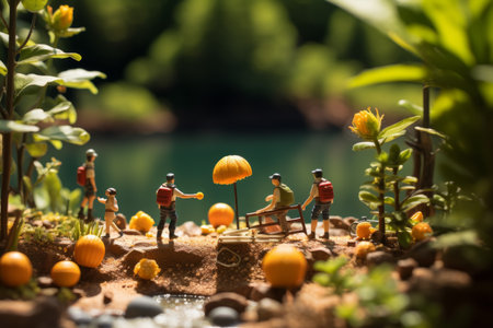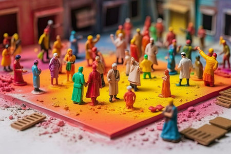 A colorful scene of miniature people gathered together in a miniature world, showcasing a playful and creative arrangement of figures