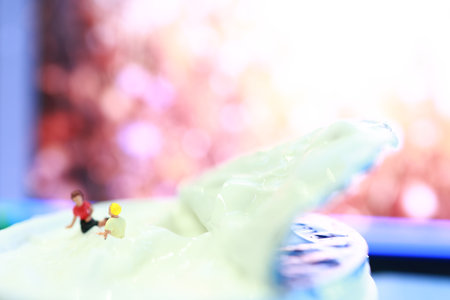 Couple sitting on ice cream, selective focus