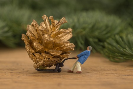 Miniature people worker figures at warehouse christmas decoration