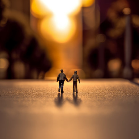 Miniature people - a couple of lover girl friend, twins, traveller with beautiful nature bokeh background