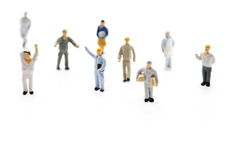 Miniature figures of workers against yellow backdrop