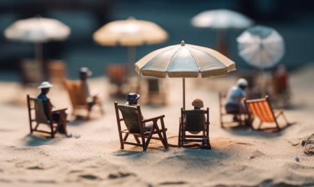 Miniature world: people in different situations taking a holiday at the beach. Summer lifestyle, vacation and tourism concept