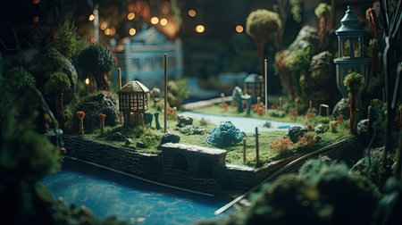 Perfect replicas of famous monuments in mini world, lawn., generative AI
