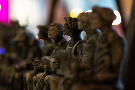 Close-up of Small Figurines in a Row