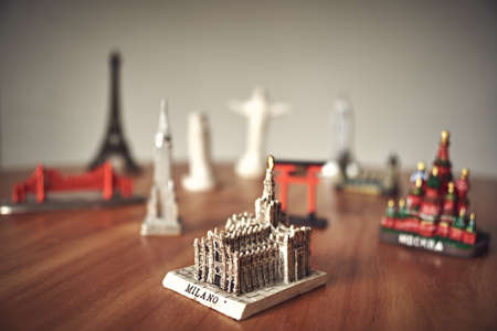 Travel concept background. Souvenirs iconic monuments. Italy.