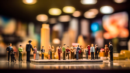 Miniature people in queue at airport terminal