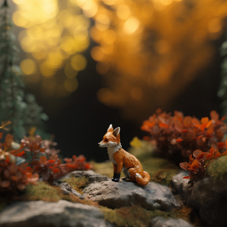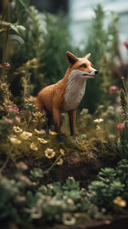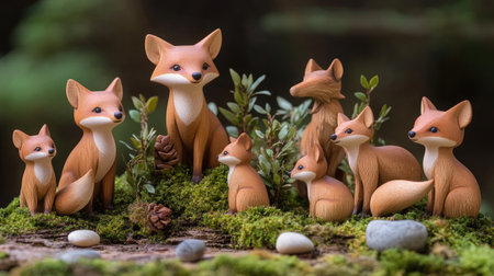 A delightful assembly of fox figurines set against a lush backdrop, showcasing the beauty of wildlife and creativity in an enchanting woodland scene.