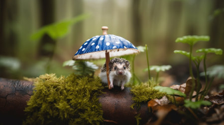 an elephant mouse with a red nose is captured in this uhd image, nestled under moss in the norwegian nature. the photograph showcases vignetting, reflections, and mirroring techniques, enhancing the spatial interpretation. the wildlife photography highlights the shiny eyes of the elephant mouse, creating a captivating visual. ai generated