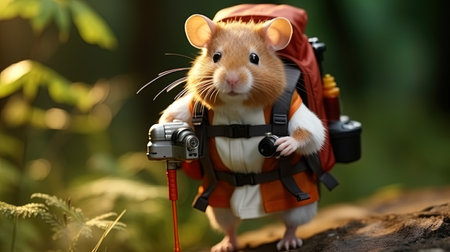 The research hamster, with a backpack and magnifying glass, delves into its exploratory mission.