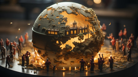 Miniature figures gather around earth globe celebrating global diversity and unity for wildlife day