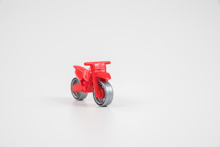 Small toy, bicycle model on wooden background