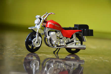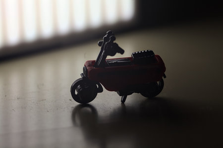 Close-up of miniature toy motorcycle on natural background