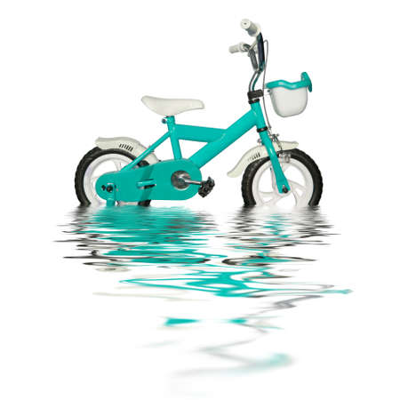 children's bicycle with water reflection on white background.