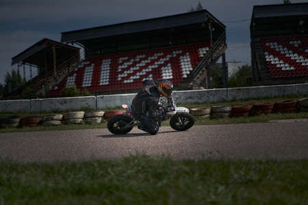 10-05-2021 Lithuania, Kaunas Moto rider, Motorcyclist rides at fast sport bike.