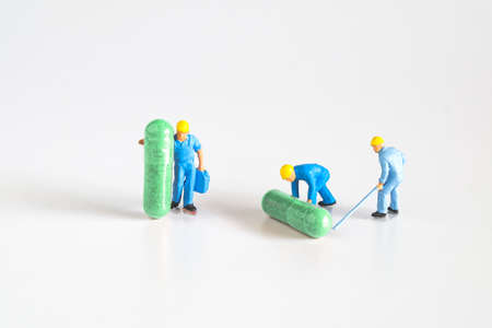 Bangkok, Thailand - March, 24, 2020 : Tiny toys are heading towards the Health Mask to protect against viruses. Kovid-19. Protect yourself from pestilence at Bangkok, Thailand .