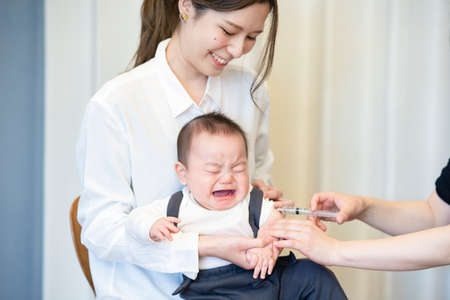 mother and daughter, a child after vaccination. A child with poor health and a high temperature.
