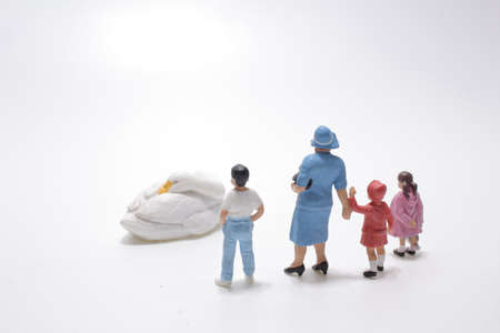 Small toy figurines group sitting together