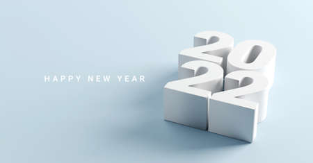 Happy New Year 2022 with 3d numbers on blue background, 3d render