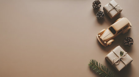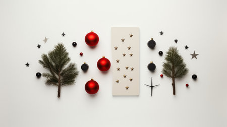 Minimalistic Christmas decorative items arranged in flat lay style AI generated illustration