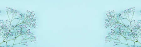 Beautiful flower background of blue gypsophila flowers. Flat lay, top view. Floral pattern.