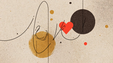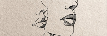 Faces of four women in line-art style with beige spots and blue flowers.