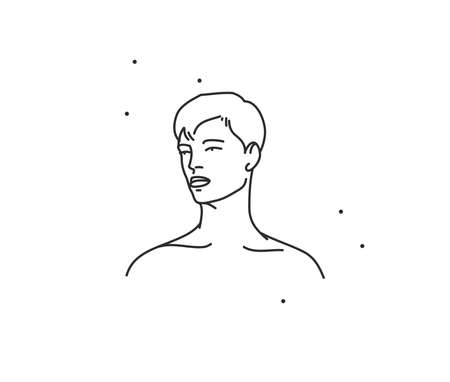 Hand drawn vector abstract stock flat graphic illustration with element,bohemian line art icon of beauty man icon in simple style for branding,isolated on white background.