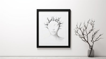A young woman sketching an abstract tree on the canvas using pencil