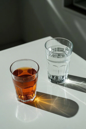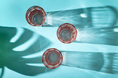 Glasses of water and shadows on the background. Pure minimalist contemporary art. Conceptual image. Simple visual concept.