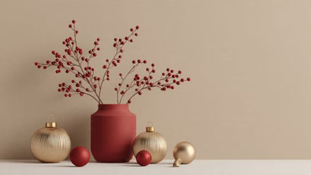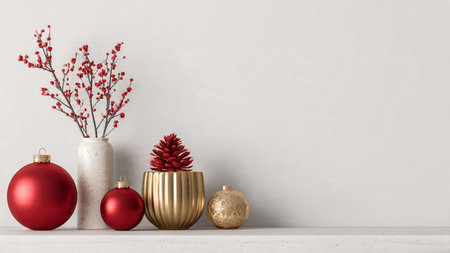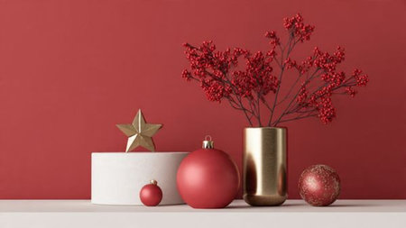 Festive holiday decorations arranged in a flat lay, ready for seasonal promotions.