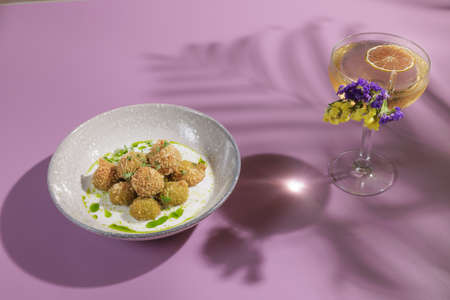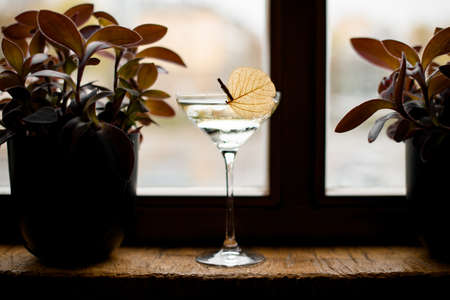 glasses with alcoholic cocktail for a party at the event. Copy space
