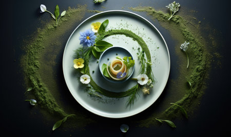 The artistry of gourmet food on a plate showcases the chef's skill and passion for gastronomy. designe