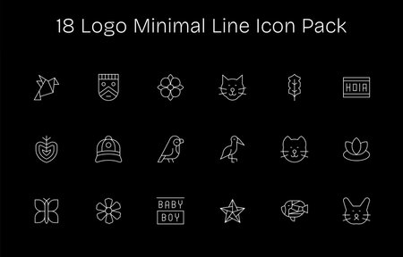 This collection features 18 Minimal Line-style icons tailored to the Logo theme, great for digital design.