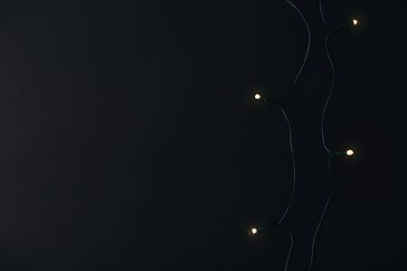 Background - electric garland with incandescent bulbs, yellow warm light, retro style