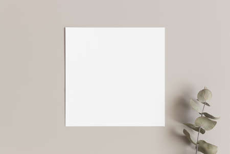 Blank mockup, copy space and plants, poster and invitation with empty on desk, card decoration your design or branding, simplicity and minimal, nobody.