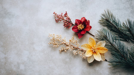 This image features an arrangement of decorative flowers and greenery on a neutral surface, perfect for seasonal events, home decor, or artistic inspiration.
