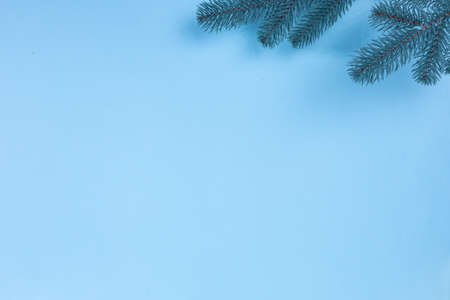 Branches of a Christmas tree on a blue background. The basis for the postcard.