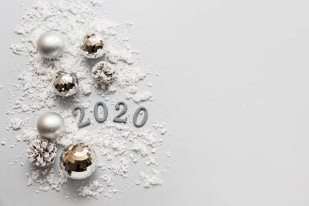 Figure 2020 with Christmas balls on white background. New year celebration